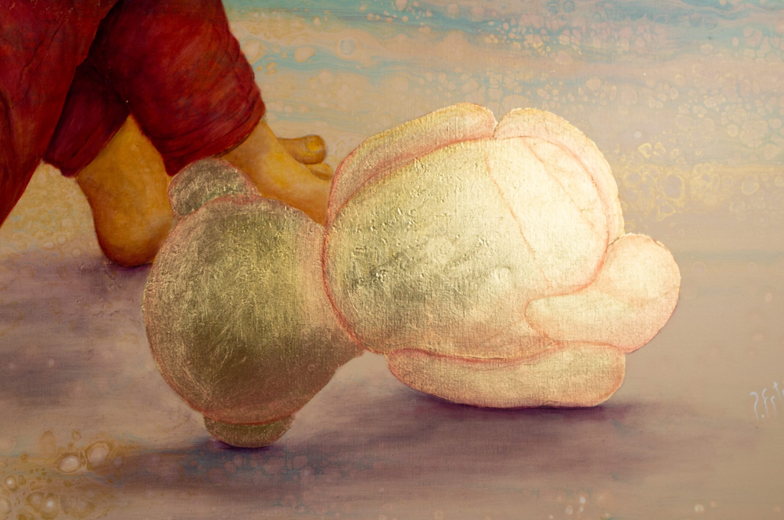 Mixta : Acrílico, óleo y pan de oro sobre lienzo