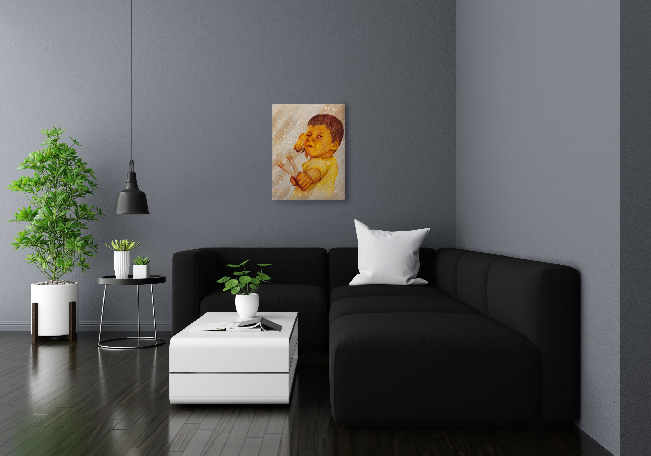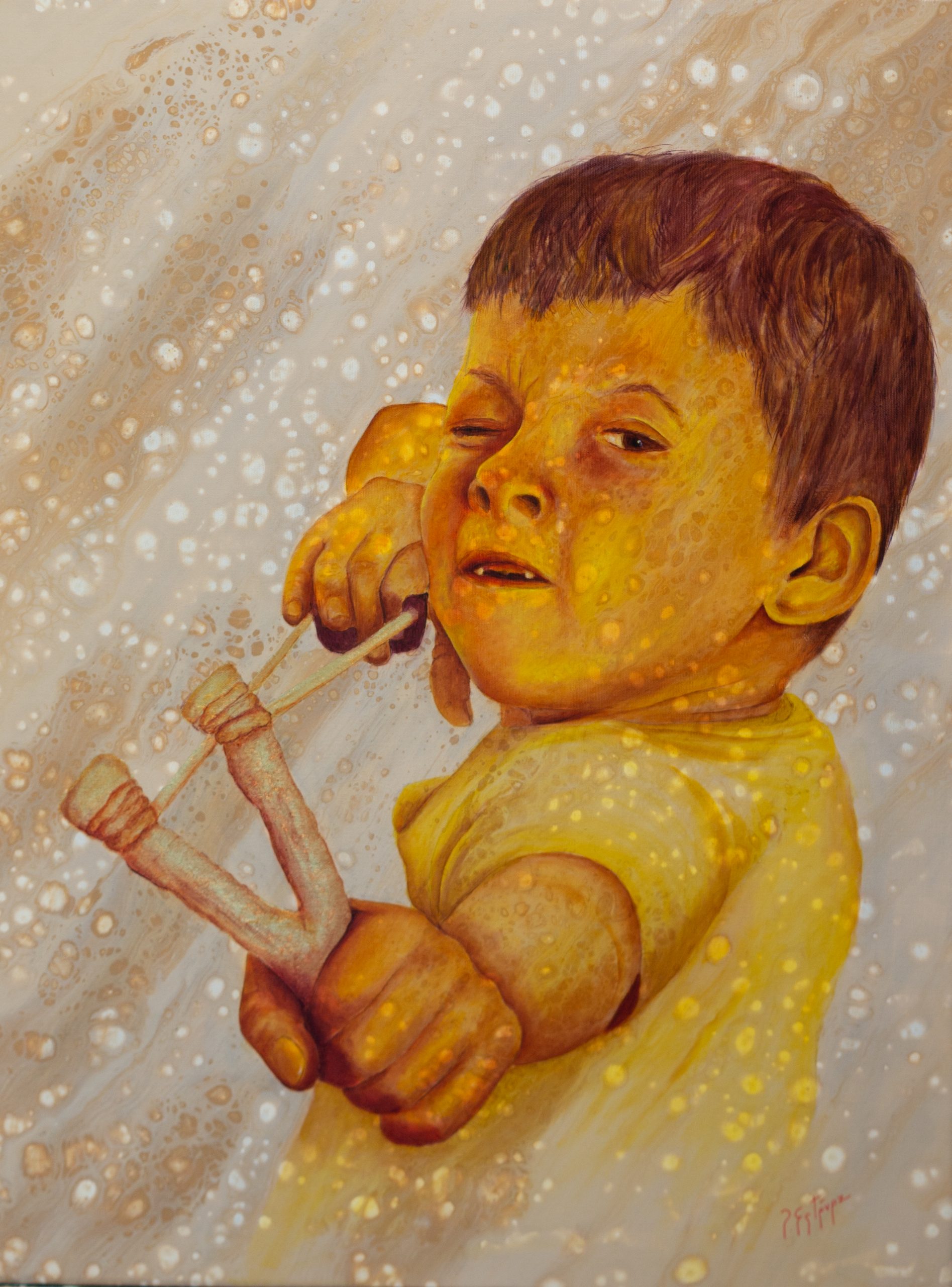 En esta obra dejo ver ese diablillo que llevamos dentro en nuestra niñez, mi infancia transcurrió en un entorno rural, donde salir a cazar pájaros era lo habitual (Hoy en día soy incapaz de matarlos) pero es parte de mi pasado y fue un aprendizaje para llegar a ser lo que soy hoy.